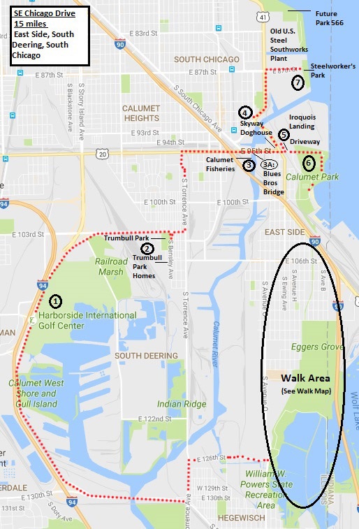 We’ve added a 15 mile drive of other highlights in the area with an emphasis on its industrial activity, past and present. This drive takes you through East Side, South Deering and the south end of South Chicago.