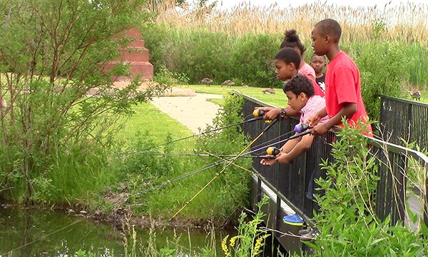 Start your walk of East Side by pulling into William W. Powers State Recreation Area entrance at 126th and Avenue O, turn left once inside, and find a parking space close to access to the Burnham Greenway. Map Points: