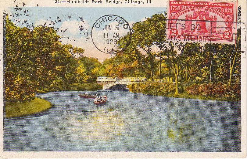 History of Humboldt Park, the Park: (from Wikipedia) William Le Baron Jenney began developing the park in the 1870s, molding a flat prairie landscape into a “pleasure ground” with horse trails and a pair of lagoons. The park opened to the public in 1877, but landscape architects such as Jens Jensen made significant additions to the park over the next few decades. Between 1905 and 1920, Jensen connected the two lagoons with a river, planted a rose garden, and built a fieldhouse, boathouse, and music pavilion. There is an audio tour on the Chicago Park District website of the park that gives more history and information. (The walk is also available at Tour Budy.)